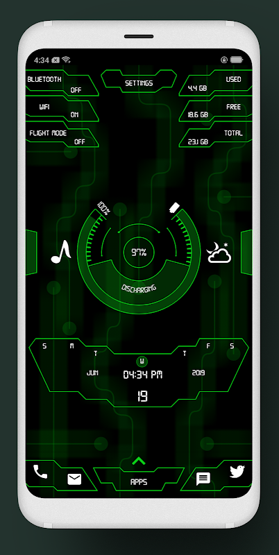 Инновация hi-tech launcher - это интерфейс следующего поколения, разработанный специально для телефонов Android. Высокая производительность и высокотехнологичный дизайн придадут вашему устройству удивительный новый вид. Играйте с цветными темами домашнего экрана и анимацией; персонализируйте свое устройство, чтобы оно стало действительно высокотехнологичным.