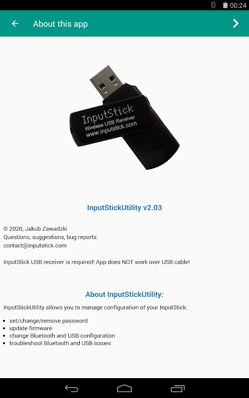 Утилита приложение для InputStick USB-ресивер. Дополнительная информация: http://inputstick.com/