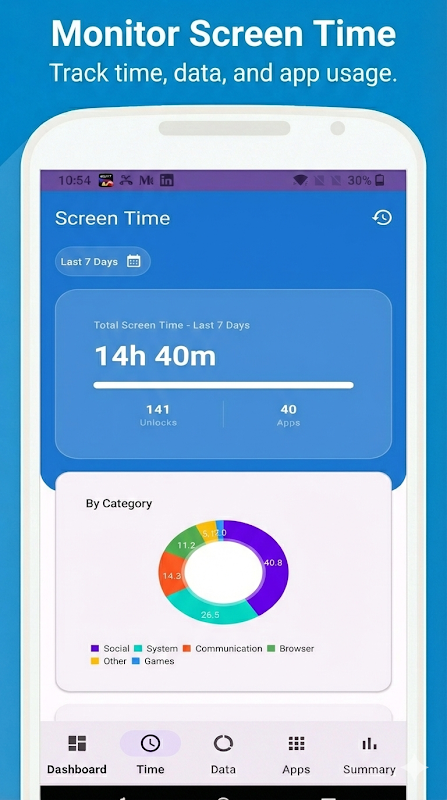 Максимизируйте свою производительность и управляйте своими данными с помощью универсальной цифровой панели управления. Независимо от того, боретесь ли вы с зависимостью от телефона или управляете строгим тарифным планом, мы предоставляем вам необходимую информацию, чтобы вы всегда оставались под контролем.