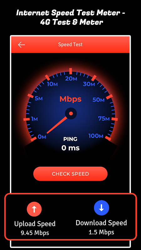Internet Speed Test Meter - 4G Test & Meter app with have choice to test fast internet speed. This is the simplest way to check free internet speed meter. It will help you test the internet speed of mobile networks, check connection status over time and monitor data usage. Perform an expert internet speed test with one tap and get all the information about the connection you need with our app.