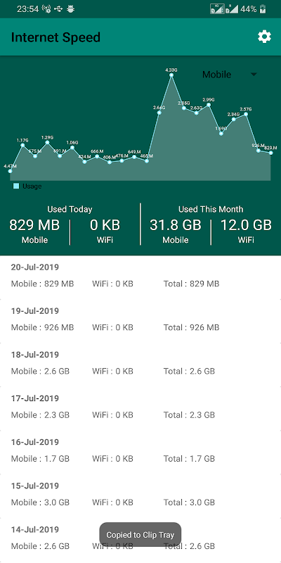 It also lets you track the data usage of last 30 days categorized by Wifi as well as Mobile.