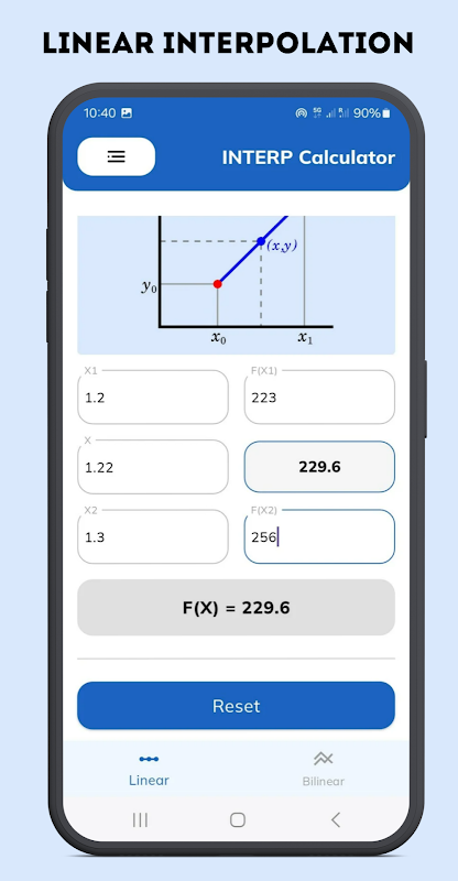 Калькулятор интерполяции — это служебный инструмент для выполнения линейной и билинейной интерполяции на основе введенных числовых значений. Приложение предназначено для студентов, инженеров, техников и всех, кто работает с табличными данными или численным анализом.