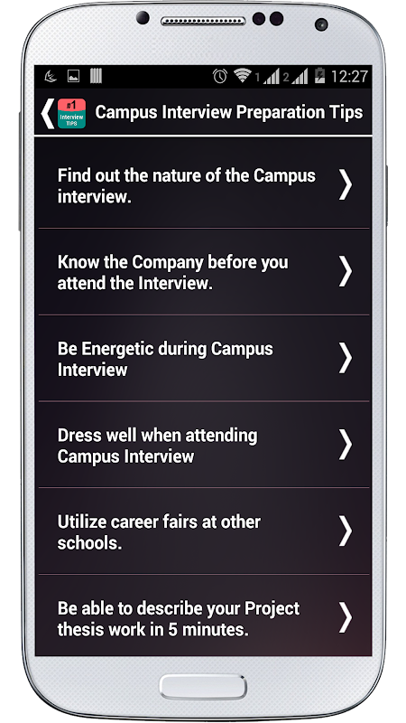 Interview Tips provides you a wide range of questions that a organization demands from his/her candidates. Application answers most commonly asked interview questions and has been categories for ease.