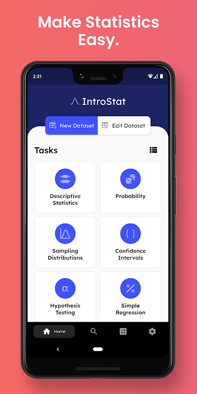 IntroStat - это калькулятор вероятностей и статистики. Это идеальный учебный инструмент для вводного курса статистики. Используйте его для выполнения любых задач по вычислению статистики. IntroStat также включает учебник по статистике с формулами, задачами, примерами и т. Д.