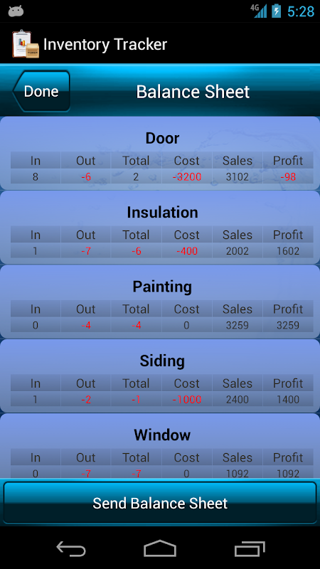 Inventory Tracker makes it easy to track your inventory, sales, payment, shipment and balance sheet on yearly, monthly, weekly and daily basis. It can also transfer the data into a spreadsheet to create your inventory report. It's the excellent Android inventory tracking app for business or warehouse administrators, sales people, managers and business owners.