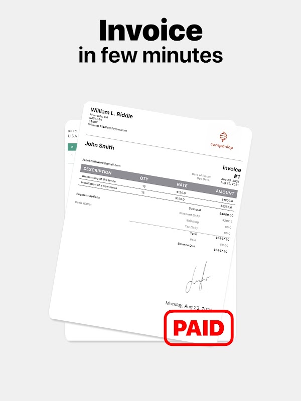 Приложение для выставления счетов: Invoice Maker - это бесплатное приложение для создания и отправки профессиональных счетов-фактур, счетов, шаблонов PDF, смет, квитанций, котировок, заказов на покупку, счетов-проформ и многого другого вашим клиентам.
