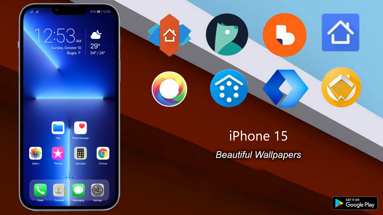 Это приложение тем для iPhone 15 выглядит как пользовательский интерфейс телефона, когда вы устанавливаете это приложение, вы получаете все оригинальные стоковые обои HD плюс 8k, темы, программы запуска и значки iPhone 15, и оно поддерживается почти 99% смартфонов Android. телефон, уже доступный на рынке, и те мобильные телефоны, которые скоро появятся.