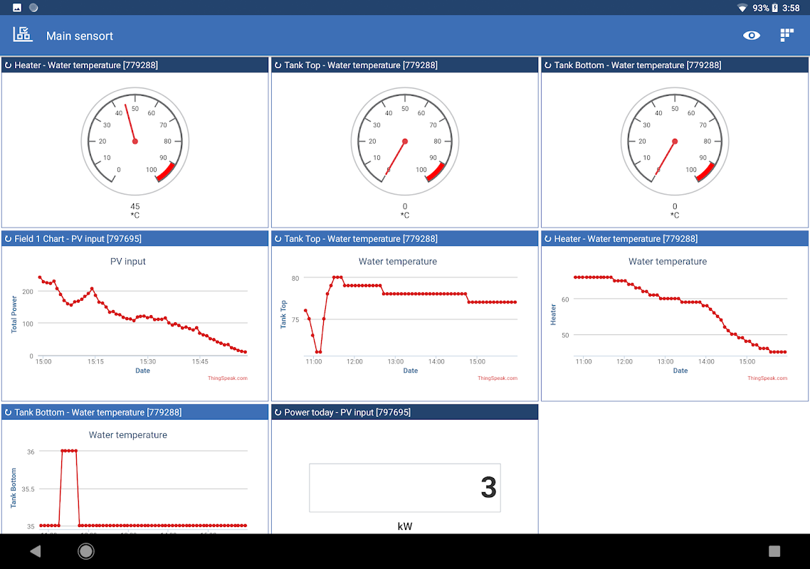 Виджет главного экрана — очень полезная часть приложения, которая помогает просматривать данные полей канала без запуска приложения. Один виджет на главном экране может визуализировать до 8 полей из разных каналов, отображающих датчик, индикатор лампы, компас или числовое значение. Каждое поле может отправлять уведомление при превышении порогового значения. Чтобы вписаться в пространство виджетов на главном экране, имя поля можно изменить локально.