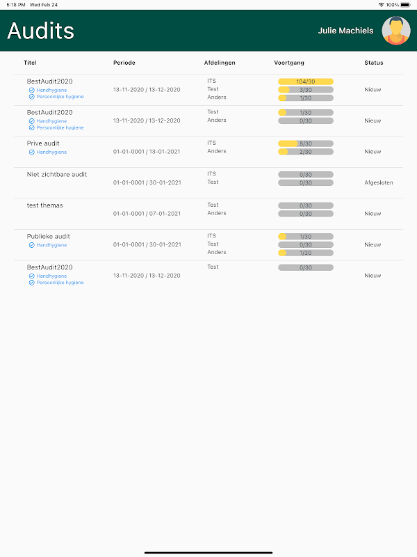 Это приложение позволяет планировать и проводить аудит по предотвращению заражения и загружать результаты в виде отчета. Также возможно зеркально отразить результаты предыдущих аудитов или аудитов других отделов организации. В настоящее время приложение поддерживает проверенные аудиты в области гигиены рук, личной гигиены и использования СИЗ.
