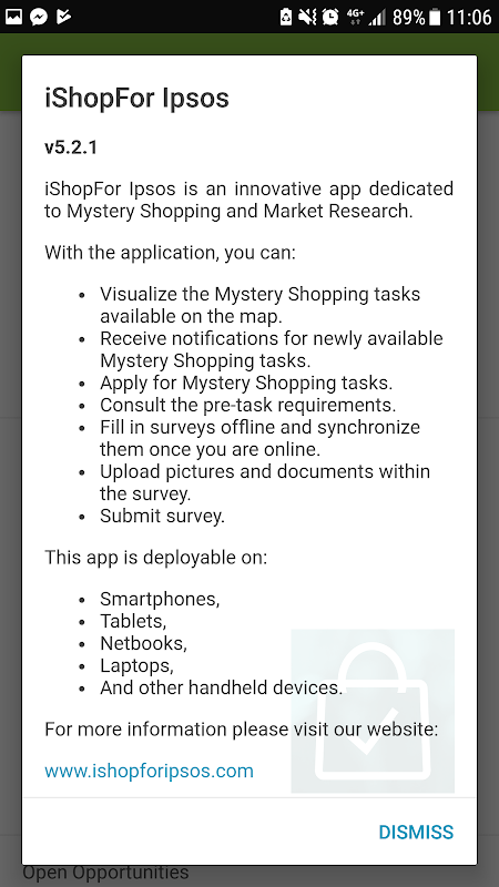 Приложение iShopFor Ipsos идеально подходит для Mystery Shopping на ходу. Выполняйте задачи Mystery Shopping где угодно со своего смартфона и получайте деньги. Получайте удовольствие, участвуйте в повышении качества обслуживания и зарабатывайте деньги, выполняя задачи Mystery Shopping.