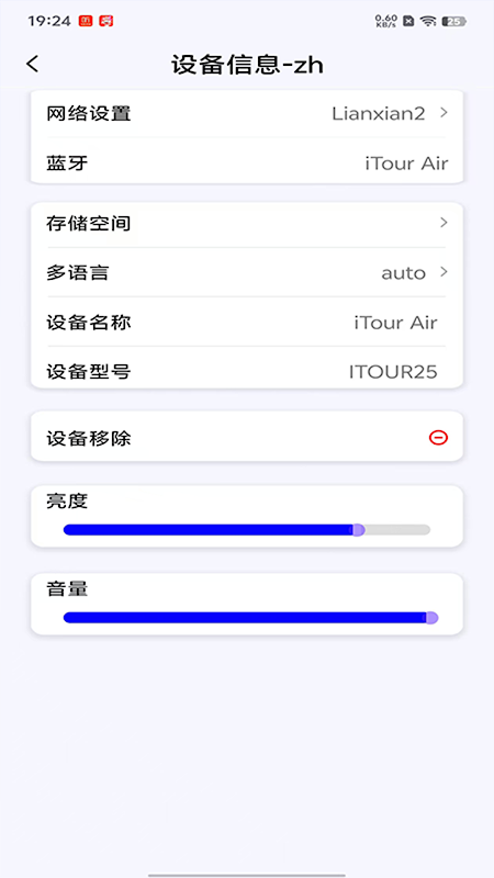 Мое: вы можете настроить сеть на стороне очков, оставить отзыв и другие операции.