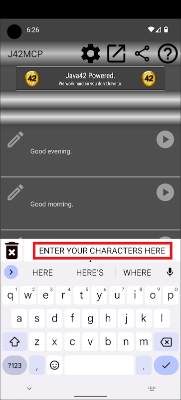 Воспроизводите более 100 настраиваемых фраз азбуки Морзе со скоростью от 5 до 49 слов в минуту.