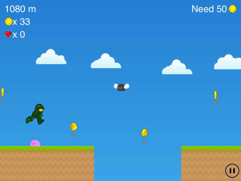 Simple game control. Tap anywhere to jump. Tap quickly for short jumps. Avoid enemies.