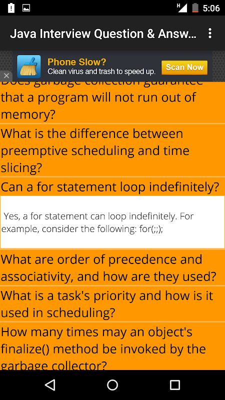 App охватывает 40 наиболее часто задаваемые Java Интервью Вопросы и ответы