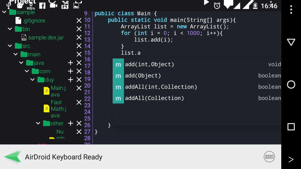 Java консоль для Android, редактор автозавершения и APK строитель.