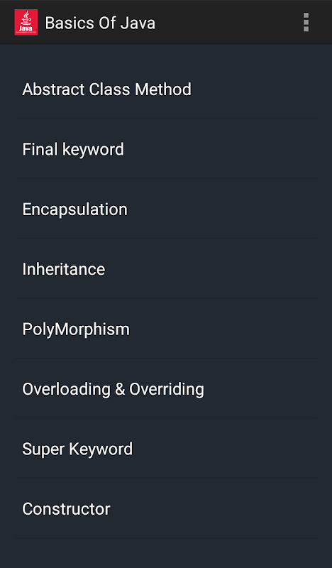 This Java app is smooth having interactive interface containing enough programs to help you to go through any technical programming exams and interviews.This is a magic box for every aspiring programmers, where they can explore a whole lot of options which can help them to enhance their basic programming skills in java.
