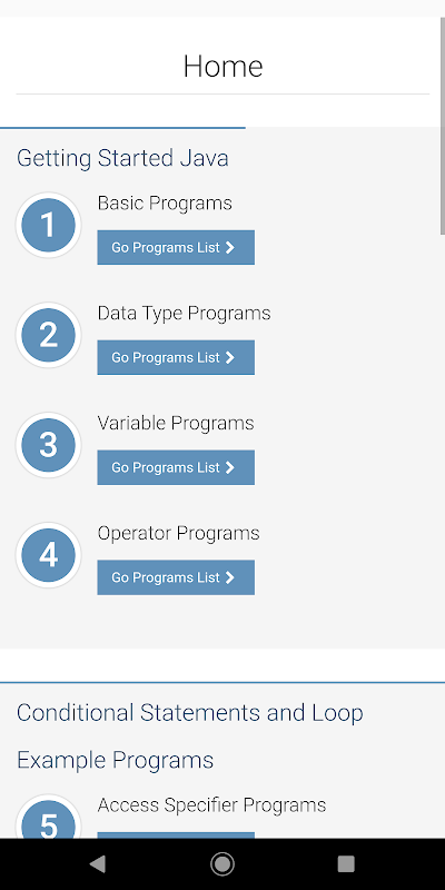 This Java Programs Example App will help you to learn JAVA programming language by simple examples with Output.“Learn Java Program” app has a really simple and intuitive user interface. It is the best app to let you learn the Java programming language for free
