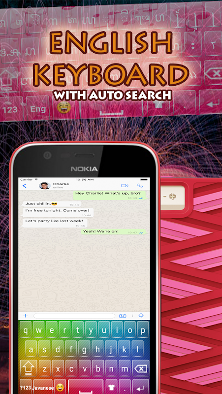 Яванская клавиатура с новыми прохладными шрифтами и веселым emojis теперь доступна в магазине Google Play! Получите эту тему Javanese Keyboard; возьмите шанс сделать вашу мобильную клавиатуру более стильной и модной, чем когда-либо прежде! Яванская клавиатура принесет вашей клавиатуре Android самую стильную персонализированную оптимизацию клавиатуры. Яванское приложение для клавиатуры обладает самым фантастическим яванским опытом набора текста.