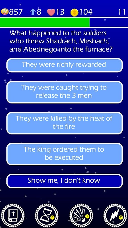 Хотя первые 500 вопросов в игре являются правильными, вам решать, правильно ли вы на них ответите. Даже имея одну жизнь, вы можете играть вечно, если ваши ответы правильные. Насколько хорошо вы знаете Библию?