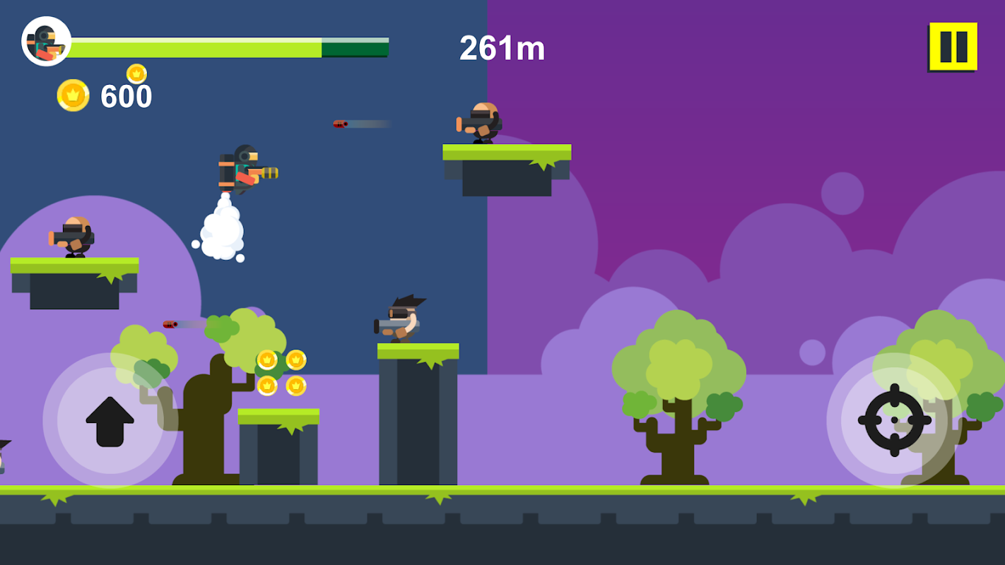 Jet Fire 2D — простая игра, в которой вам нужно избегать пуль и препятствий, а также собирать монеты, чтобы разблокировать новых персонажей.