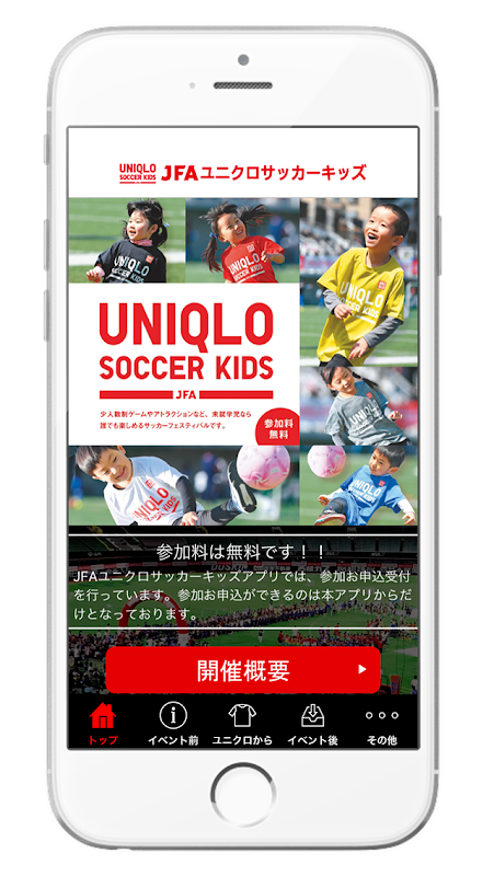 JFA Uniqlo Soccer Kids - это веселый футбольный фестиваль, который позволяет всем дошкольникам в возрасте до 6 лет участвовать с футбольным опытом или без него.