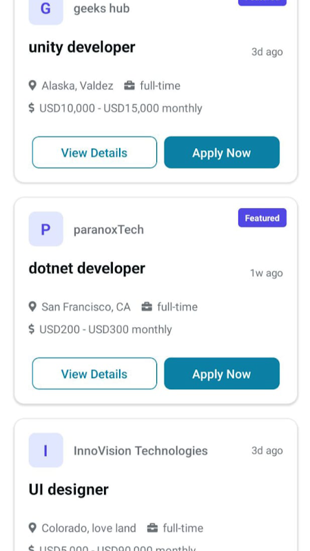 Ищете свой следующий шаг в карьере? Job Finder соединяет соискателей работы с ведущими работодателями по всему миру! Независимо от того, ищете ли вы возможности для работы на полный или неполный рабочий день, удаленно или внештатно, наше приложение делает поиск работы простым, быстрым и эффективным.