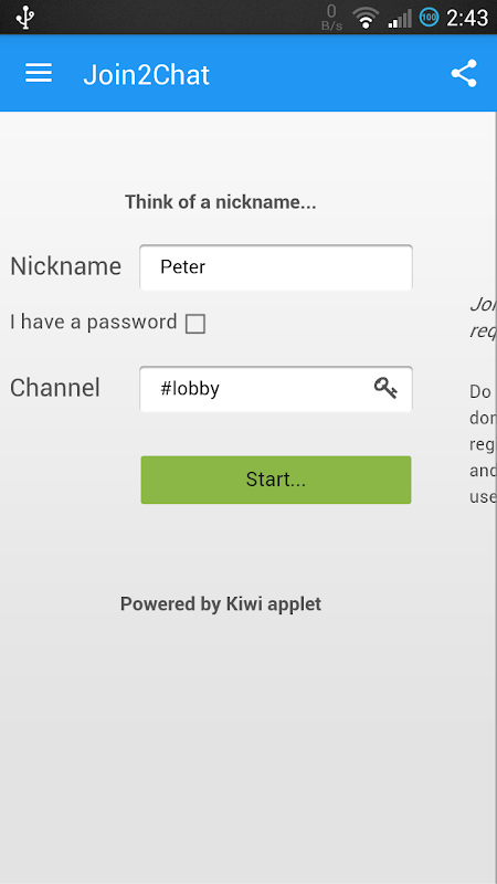 Join2Chat Chat is an application for who want a clean and quality chat, allowing mobile users to connect to online chat rooms.