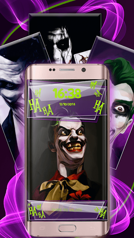Если вы ищете аутентичное “приложение для блокировки экрана”, выберите Джокер экран блокировки! Вы будете в восторге от уникальных картин джокера, которые мы подготовили для ваших новых идей дизайна экрана блокировки! Пусть белая кожа, рубиновые губы, вечно растянутые в широкую улыбку, украшают ваш телефон или планшет! Клоун убийца на экране блокировки отлично заменит ваше старое фото на экране!