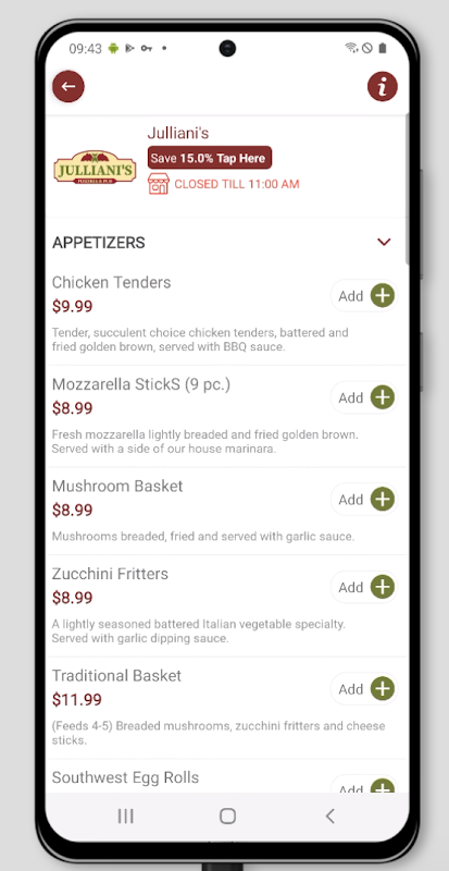 1. Get the Julliani's Online Order app and conveniently order from anywhere on your Android phone and tablet.
