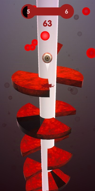 Управляйте своим глазным яблоком и прыгайте вниз по спиральным платформам.