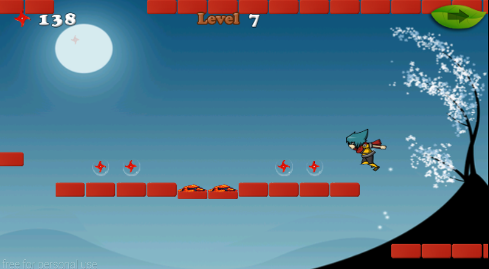 • The game ends when the ninja touches an obstacle