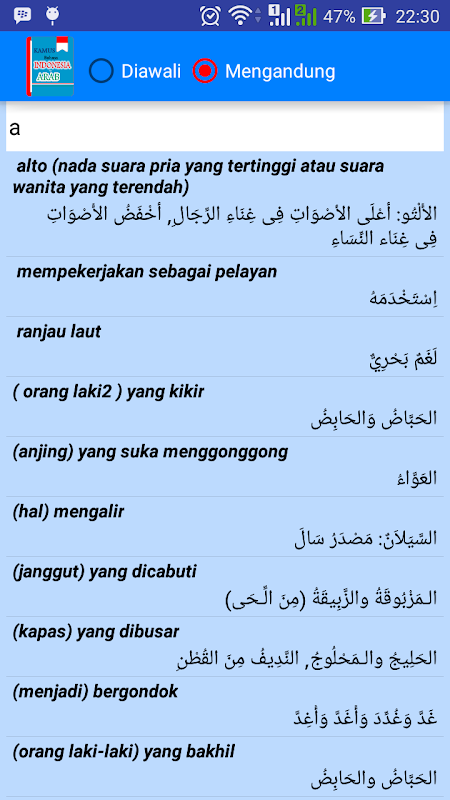 Kamus bahasa Indonesia ke bahasa Arab yang dapat digunakan secara offline atau tidak menggunakan koneksi internet