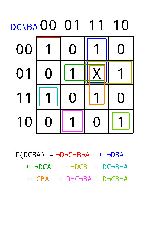 От 3-7 переменных упрощает функции, введенные логического выражения, маркировки таблицу истинности, или выбирая maxterms минтермов.