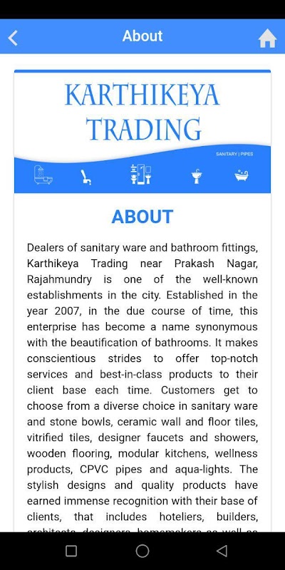 Established in the year 2007, Karthikeya Trading in Prakash Nagar, Rajahmundry is a top player in the category PVC Pipe Dealers in the Rajahmundry. This well-known establishment acts as a one-stop destination servicing customers both local and from other parts of Rajahmundry. Over the course of its journey, this business has established a firm foothold in it’s industry. The belief that customer satisfaction is as important as their products and services, have helped this establishment garner a vast base of customers, which continues to grow by the day