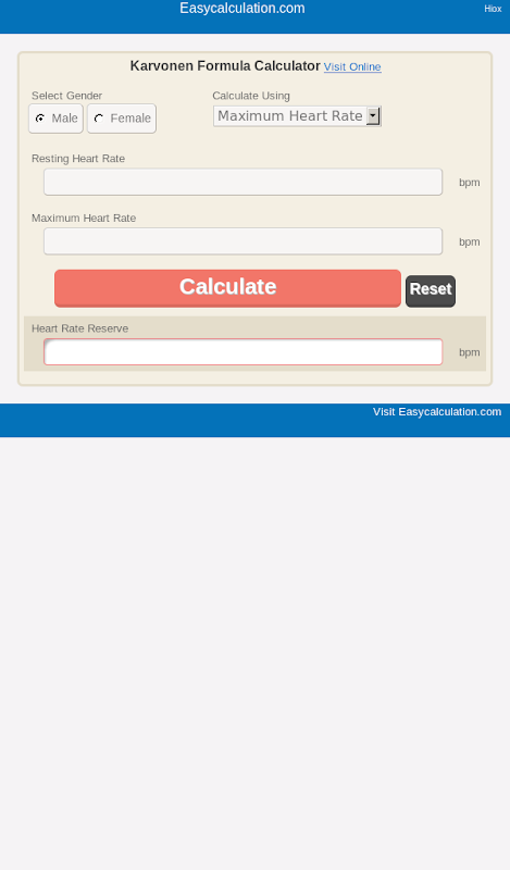 Карвонен Формула Калькулятор, чтобы найти частоту сердечных сокращений