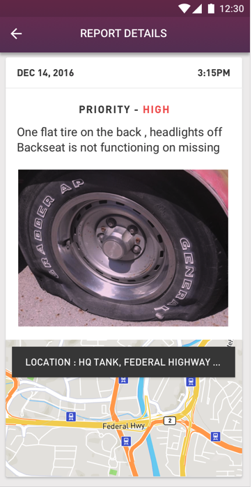 - Живая представления отчета для руководителей флота по охране здоровья и безопасности транспортных средств, таких как износ шин, замены батарей или других предметов технического обслуживания.