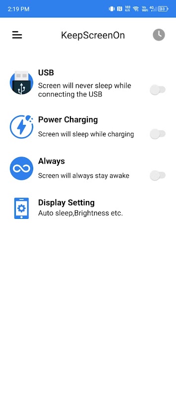 В основе приложения лежит его самая мощная функция: возможность держать экран вашего устройства включенным на неопределенный срок. Это идеально подходит для пользователей, которые часто читают длинный контент, используют свои устройства для расширенного воспроизведения видео или отслеживают процессы в реальном времени, такие как загрузки, биржевые графики или каналы наблюдения.