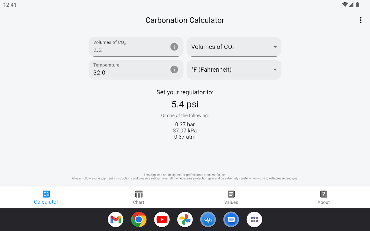 Обратите внимание, что карбонизация требует времени, и это приложение сообщит вам только, что установить в регуляторе баллона, а не как долго. Я настоятельно рекомендую вам поискать в Интернете дополнительную информацию о том, как заставить карбонатироваться, прежде чем пытаться это сделать.