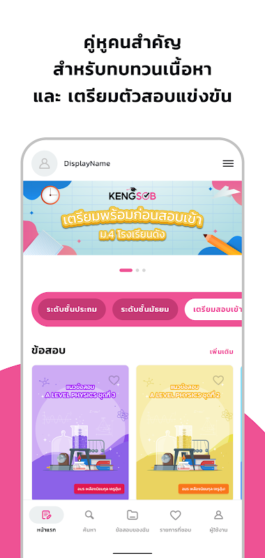 - Охватывает весь материал экзаменов по всем предметам, включая математику, тайский язык, обществознание, английский язык и естественные науки, включая тесты на знание языка.