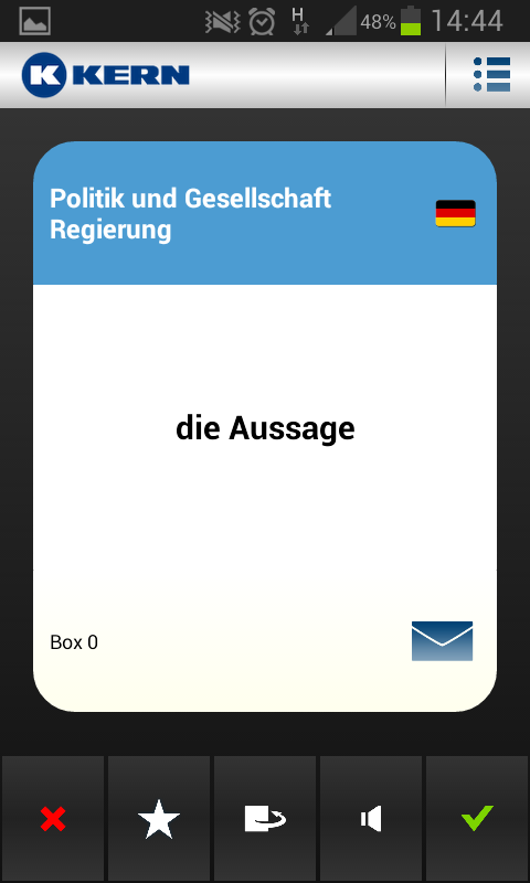- Lernfunktion zum systematischen Vokabellernen mit dem Leitner Karteikartensystem in 6 Stufen