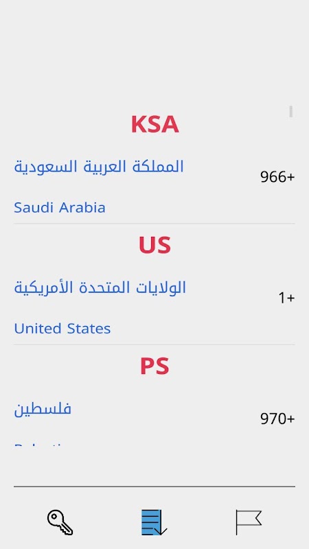 Вы можете выполнить поиск по названию страны на английском, арабском или название аббревиатура страны