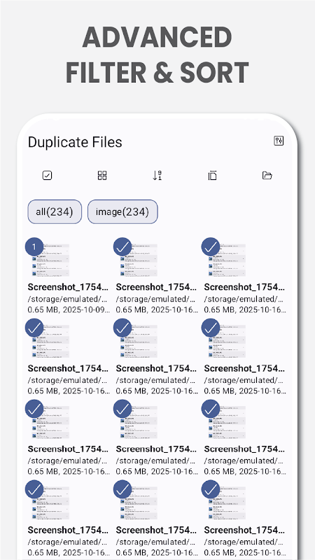📊 Фильтрация и сортировка — упорядочивайте дубликаты по имени файла, размеру или легко группируйте их