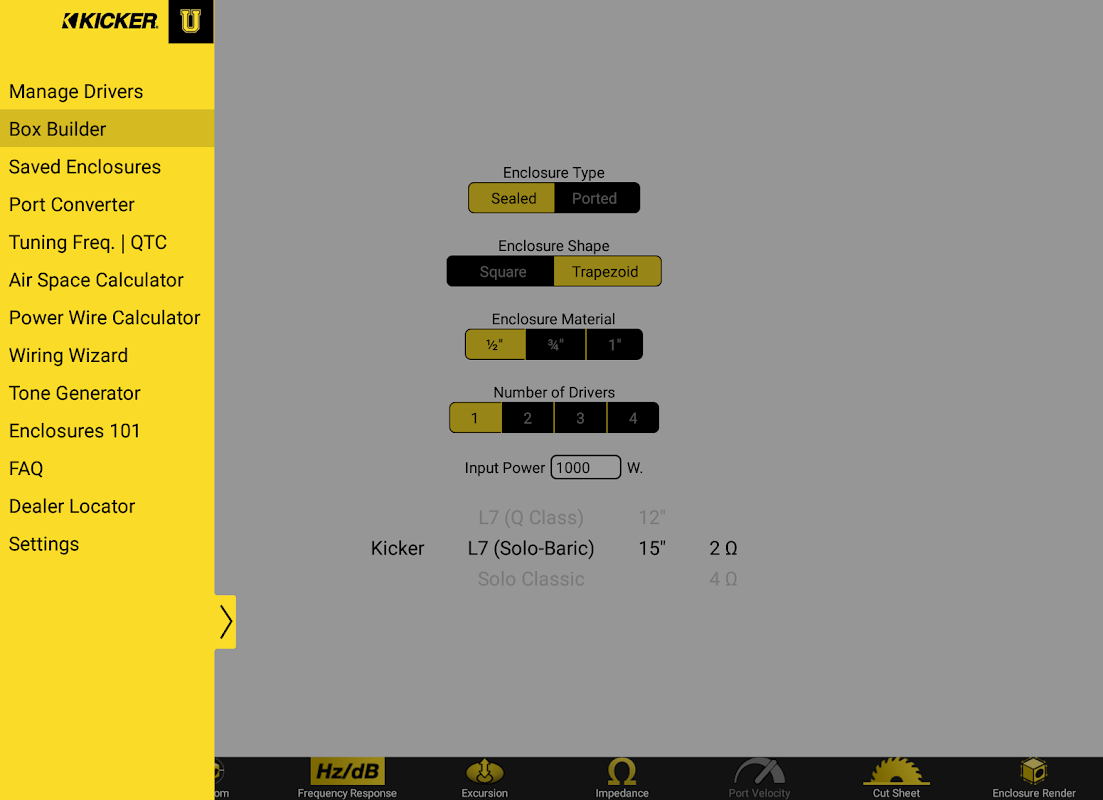Эта версия содержит калькуляторы для выяснения порт Размеры и настройки частот и включает в себя возможность загрузки и сохранения Тиля-Смолла параметры для создания коробки для любого водителя, у вас есть.