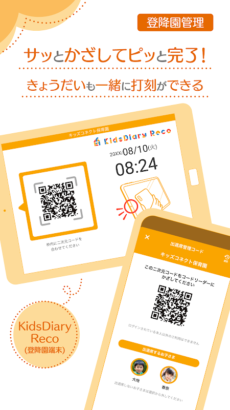 Это приложение для родителей системы ИКТ по уходу за детьми «Kids Diary for LGWAN», которое объединяет детей и взрослых с помощью улыбки.
