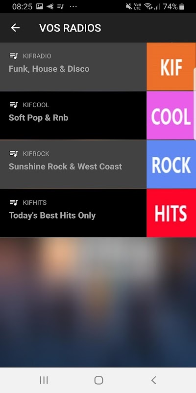 Слушайте любимую музыку, выбрав одну из наших 4 станций: KIFRADIO предлагает широкий выбор треков Funk & House и DJ-сетов. KIFCOOL погрузит вас в тихую и непринужденную атмосферу со вчерашними и сегодняшними хитами. KIFROCK подарит вам ощущение холода на западном побережье Соединенных Штатов с большим списком рок и поп-музыки с 80-х годов до сегодняшнего дня. KIFRADIO HITS играет только самые большие хиты современности.