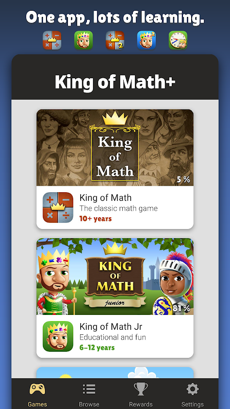Улучшайте свои математические навыки и получайте удовольствие! Игры популярной серии King of Math теперь объединены в одно приложение. King of Math+ объединяет высококачественные математические игры и является единым ресурсом для сотен уникальных упражнений и занятий. Весело и познавательно для всех возрастов!