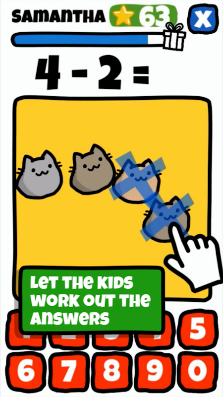 В отличие от большинства ранних обучающих игр по математике на рынке, мы не просто предоставляем вопросы и ответы. Мы также предоставляем рабочую область, чтобы дети могли самостоятельно решать вопросы... с помощью шевелящихся KittyKitties! Для первых нескольких вопросов может потребоваться руководство, но вы будете поражены тем, как быстро ваш ребенок поймет основные понятия, складывая и вычитая котят.