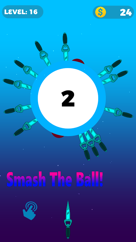 Throw the knives into the balls to break them. Blow up the coins and unlock new knives. Each level is getting harder and harder!