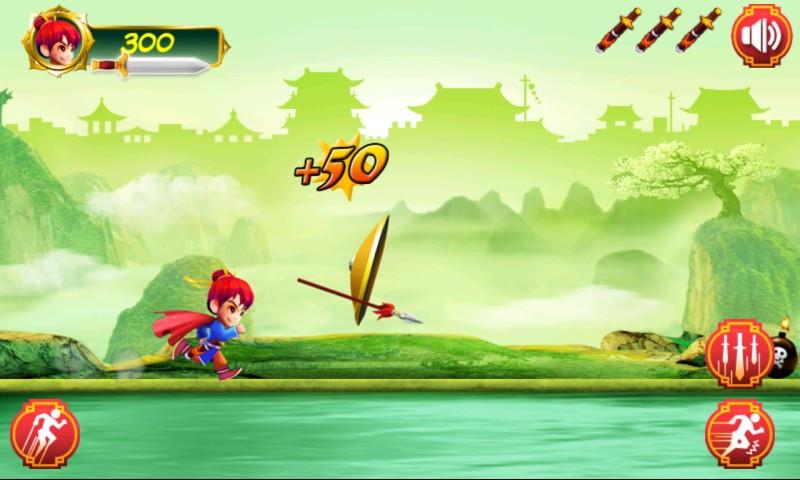 Knight Rush is simple but fun one touch arcade game. Tap Jump button to jump over the bomb. Tap Slide button to slip and kill enemy samurai.