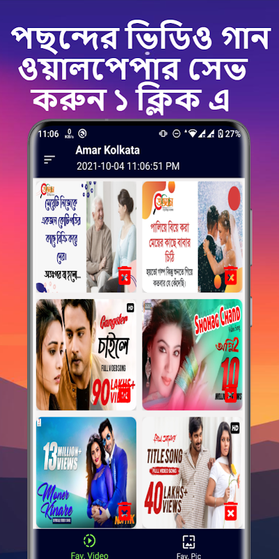 Если вам нравится песня из фильма Bangla kolkata. Песня kolkata, это приложение идеально подходит для вас. Вот все видео песни Bangla Kolkata, доступное здесь. Вот ваша любимая песня актера с такой категорией, как jeet bangla song dev song shrabonti song mimi song soham song ankush песня и другие песни актрисы доступны